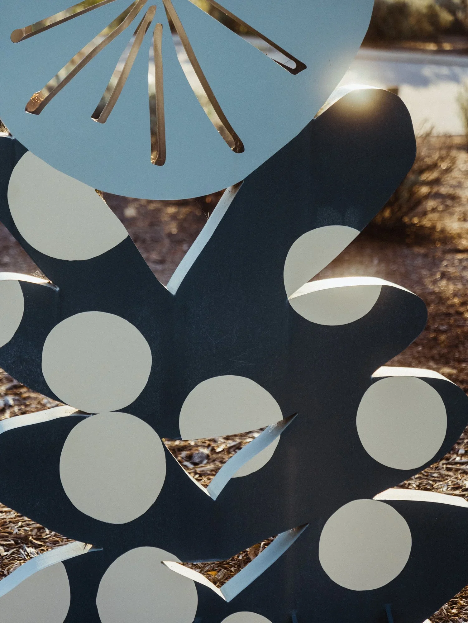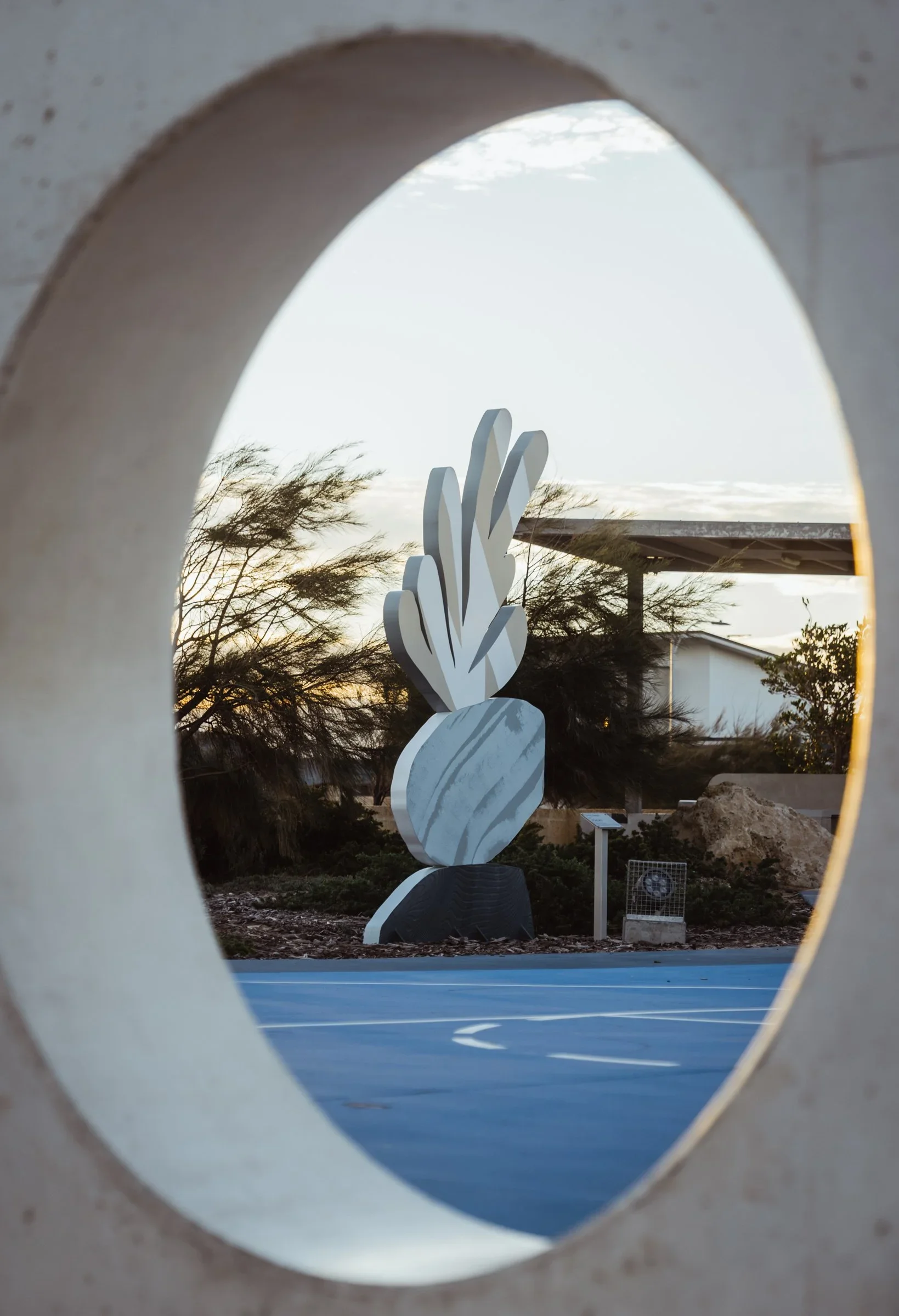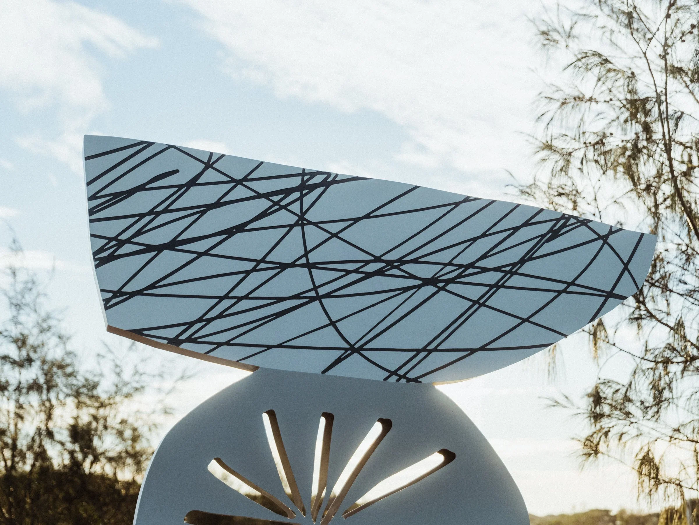 Chris Nixon’s S T A C K S is a striking outdoor installation nestled at Eden Beach in Western Australia. The work comprises sculptural site markers—stacked forms that echo the shapes found in the local natural environment. Crafted from aluminium and featuring hand-painted finishes, each marker captures an abstracted and stylised essence of the surrounding landscape.